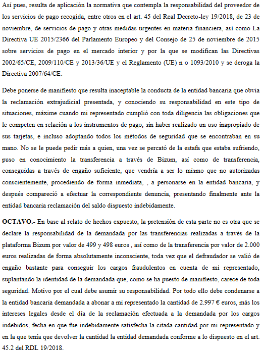 Si todo ello no funciona, sólo quedará acudir al auxilio de los tribunales para tratar de demostrar que el banco no habría cumplido con sus obligaciones de seguridad o al menos no habría implementado las medidas suficientes para evitar este tipo de fraude. Llegado a este punto, habrá de ser el banco quien tenga la carga probatoria sobre este extremo en cuanto a la negligencia del usuario, según lo establecido en la Directiva 2015/2366 de Servicios de Pago y el Real Decreto-Ley 19/2018 de Servicios de Pago.