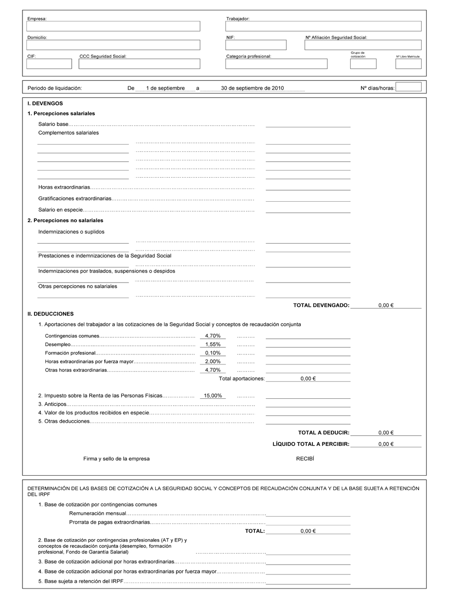 Base por contingencias profesionales, desempleo, FOGASA, y FP. |