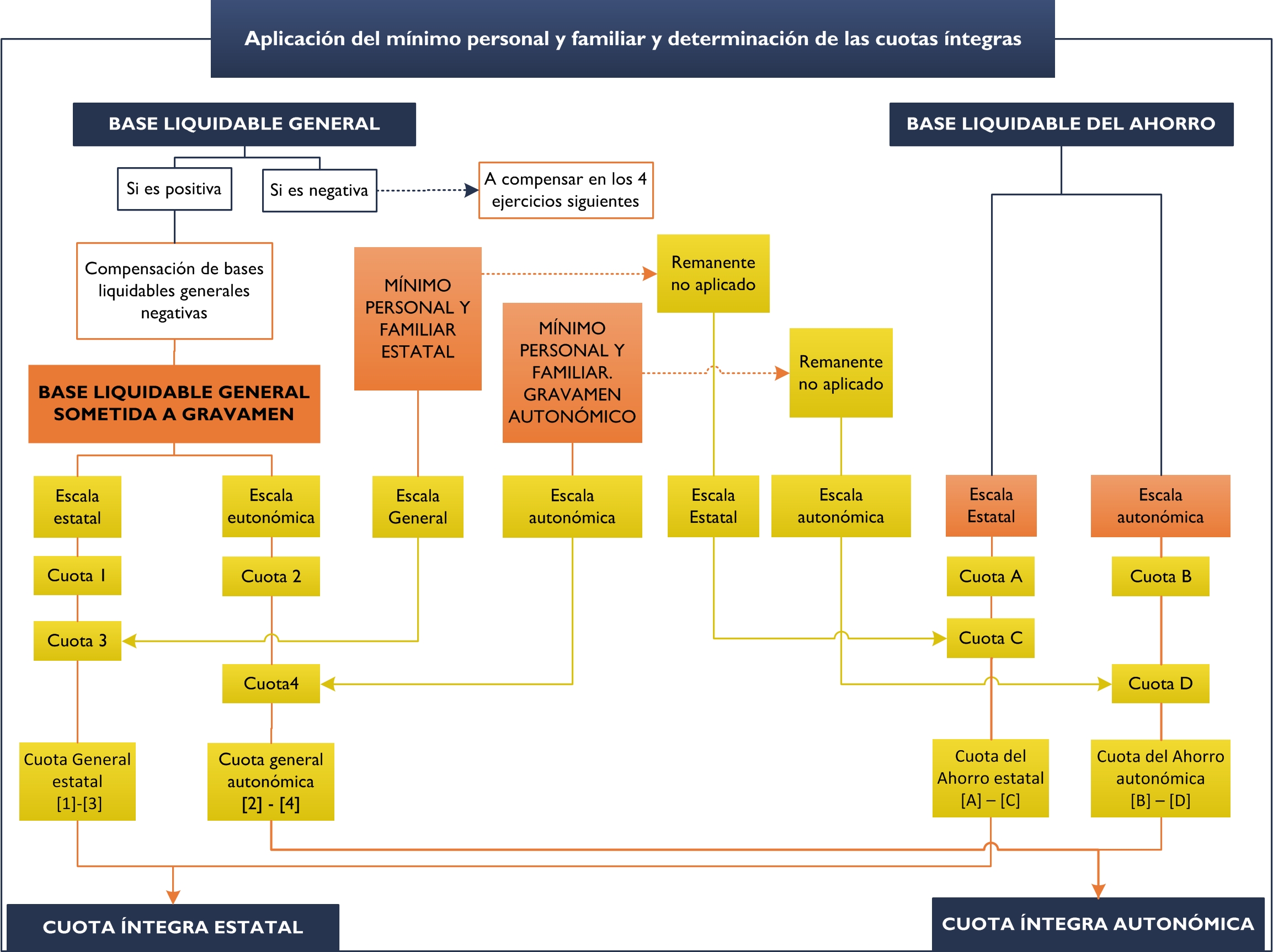 Una vez obtenidas las bases liquidables, general y del ahorro deberemos seguir el siguiente proceso: