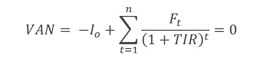 Para calcular la TIR debemos igualar el VAN a 0. Si el VAN es 0 significará que estamos en un punto en el que el proyecto es indiferente. En este punto, si la inversión inicial fuese ligeramente inferior o los flujos ligeramente superiores, el VAN sería positivo y el proyecto ya sería rentable. Por otro lado, si la inversión fuese ligeramente superior o los flujos de efectivo ligeramente inferiores, el proyecto no sería rentable. En la siguiente fórmula vemos la relación matemática del VAN y la TIR.