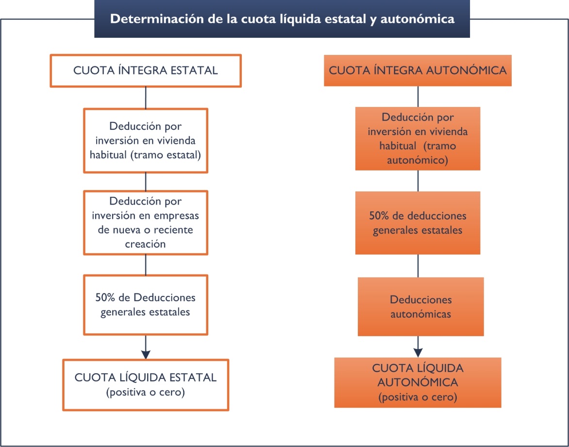 Una vez determinadas las cuotas íntegras, estatal y autonómica, la fase siguiente tiene por objeto determinar las respectivas cuotas líquidas estatal y autonómica, aplicando sobre las íntegras una serie de deducciones.