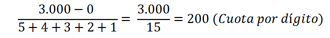 - La cuota por dígito se obtiene dividiendo el valor amortizable entre la suma obtenida en el punto anterior.