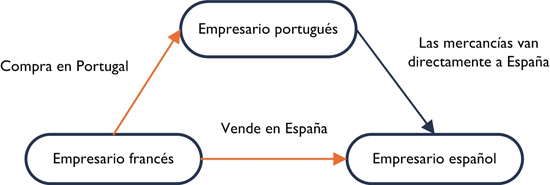 En este caso un empresario francés compra una mercancía en Portugal, para después venderla en España, país al que pide que se envíe directamente.