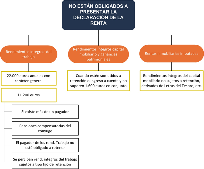 a) Rendimientos íntegros del trabajo, con el límite de 22.000 euros anuales. Aun así podrán realizar la declaración, aunque no estarán obligados.